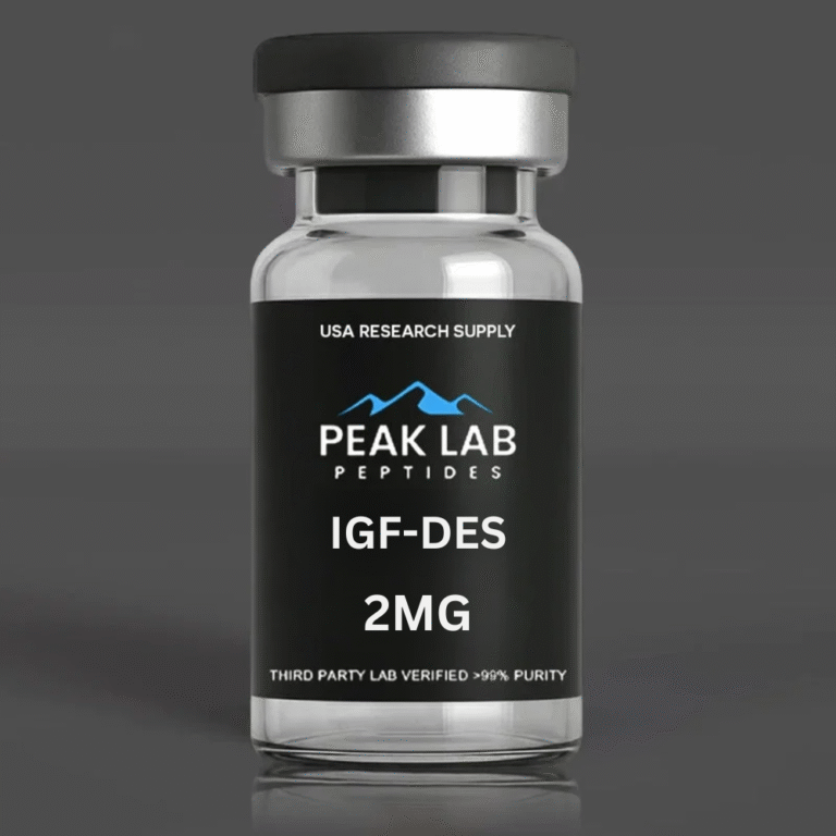 For Research Use Only – Not for Human Consumption IGF-1 LR3 (Long Arg3 Insulin-Like Growth Factor-1) is a synthetic peptide analog of human IGF-1. It has been modified to extend its half-life in vitro, allowing for enhanced stability and prolonged activity during laboratory testing. The substitution of arginine at position 3 and removal of the first three amino acids in the native IGF-1 sequence make LR3 more resistant to binding proteins, thereby increasing its bioavailability in research environments. Researchers value IGF-1 LR3 for its role in studying cellular growth, differentiation, survival pathways, and metabolic functions. It has been widely used in experimental models to explore muscle cell proliferation, neuroprotection, and regenerative mechanisms. Sequence: 83 amino acids Form: Lyophilized powder Purity: ≥ 98% (HPLC Verified) Unit Size: 1mg vial Storage: Store lyophilized peptide at -4°F. Once reconstituted, keep refrigerated at 36–46°F. ⚠ Disclaimer: All products are sold strictly for laboratory research use only. Not for human use, consumption, or therapeutic applications.IGF-DES 2 mg