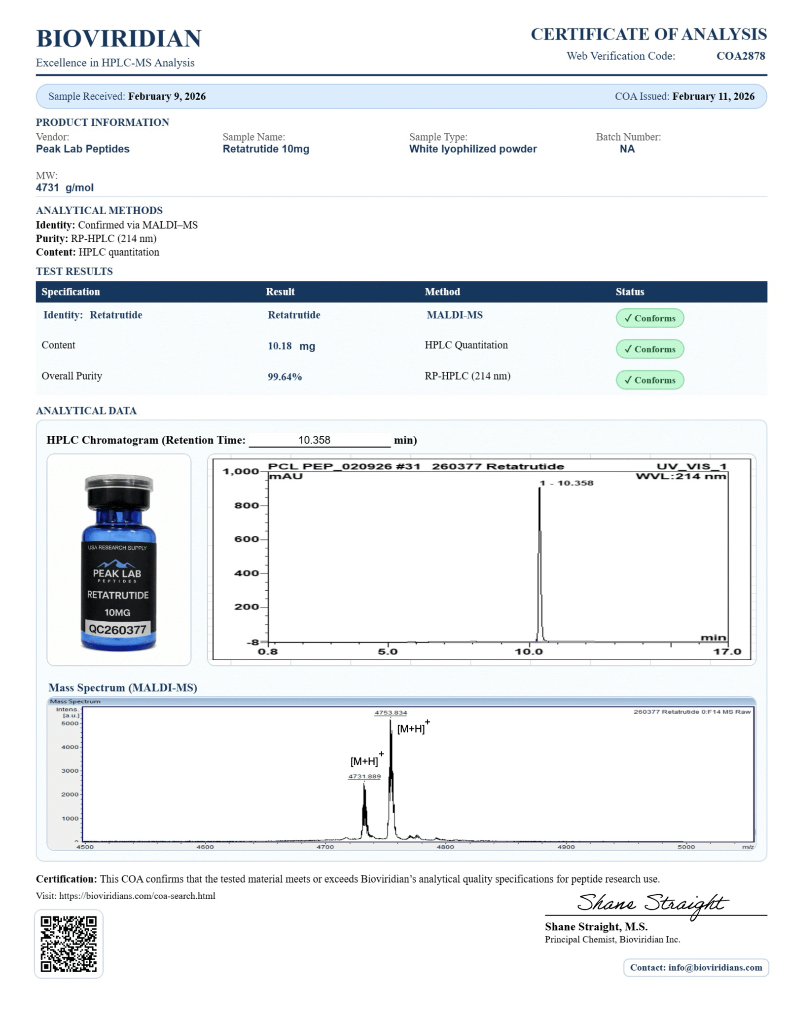 We aim to make batch-level documentation available whenever possible. Our goal is to expand COA access across the full catalog as production capacity grows.