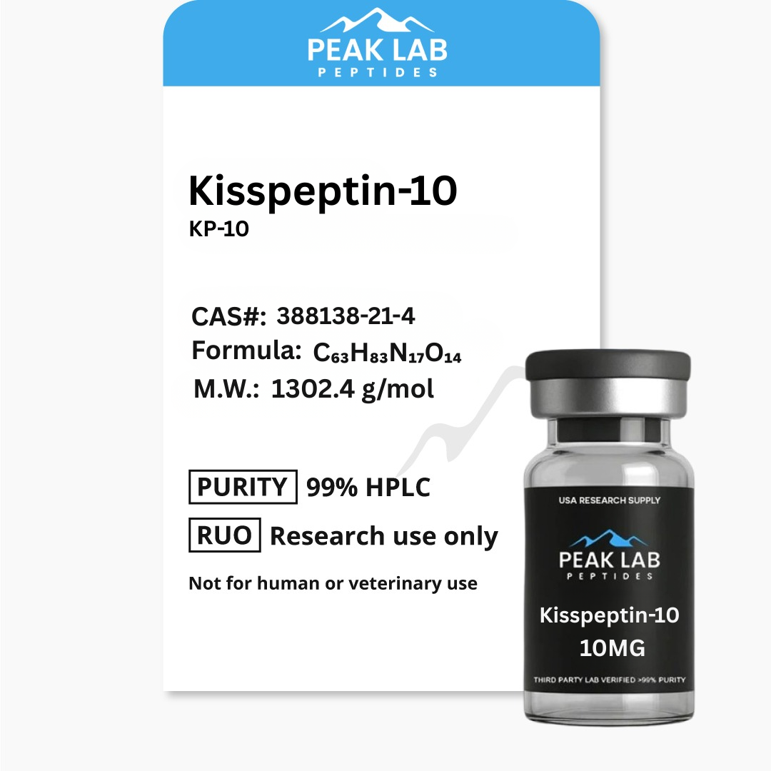 Kisspeptin-10 is a short-chain peptide fragment of the kisspeptin family, known for its regulatory role in the hypothalamic-pituitary-gonadal (HPG) axis. It is widely studied for its potential to influence GnRH (Gonadotropin-Releasing Hormone) secretion, making it a key subject in research on fertility, reproductive hormone modulation, and endocrine function.
